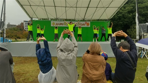 10月の教室では、このイベントのために準備体操の練習を行いました。
