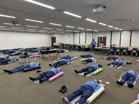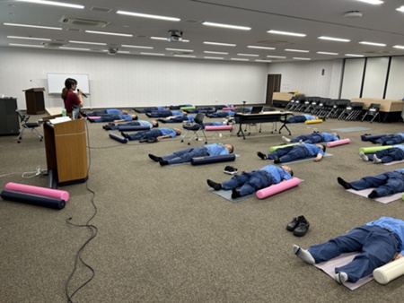 前半は講義を行い、その後はストレッチポール®やひめトレポール®を使ってのリラックスしながらの姿勢矯正を行いました。
